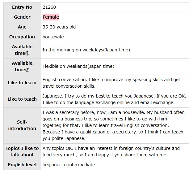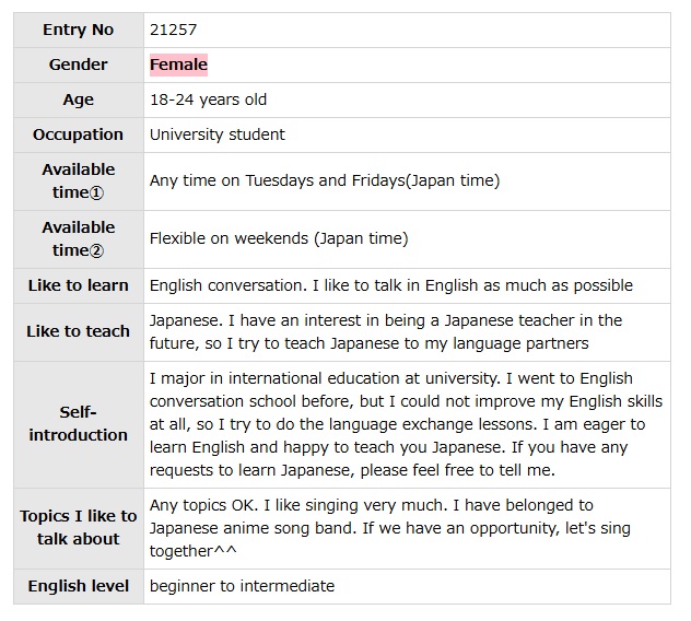 - Let's talk with the Japanese member about how to do the language exchange lessons each other and check if language exchange lessons with the Japanese member are good or not during the trial period.